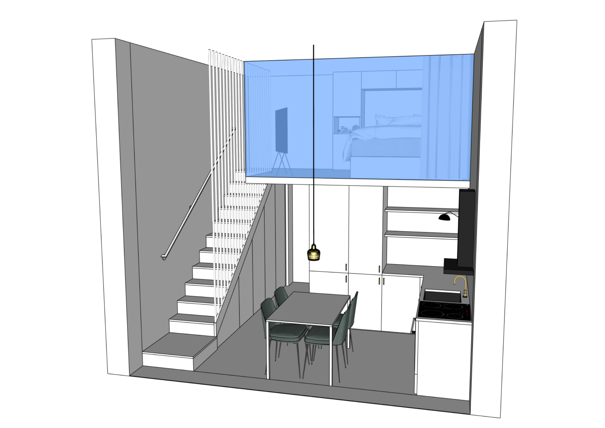 ProjektityöTilasuunnitelma pieneen asuntoon Toteutin tilasuunnitelman pieneen (16m2) tilaan osana sisustussuunnitteluopintoja.